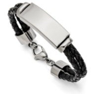 Custom Engraved Stainless Steel Men's Polished Leather ID Bracelet