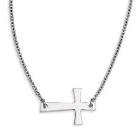 This Stainless Steel Polished Sideways Cross Necklace's Average Weight is 6.65 GM Bottom Cross Measures at 1.1 Inch Wide x 3/4 Inch Tall 19 Inch Stainless Steel Chain Included