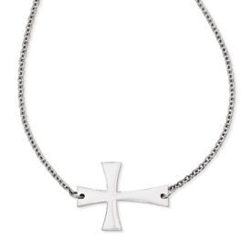 This Stainless Steel Polished Sideways Cross Necklace's Average Weight is 11.77 GM Cross Measures at Over 1-1/2 Inch Wide x Under 1-1/4 Inch Tall 21 Inch Stainless Steel Bracelet Included