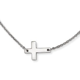 This Stainless Steel Polished Sideways Cross Necklace's Average Weight is 2.71 GM Cross Measures at Over 1/2 Inch Wide x Under 1/2 Inch Tall 16 Inch Stainless Steel Chain Included.