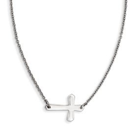 This Stainless Steel Polished Sideways Cross Necklace's Average Weight is 2.91 GM Cross Measures at 3/4 Inch Wide x 1/2 Inch Tall 17 Inch Stainless Steel Chain Included.