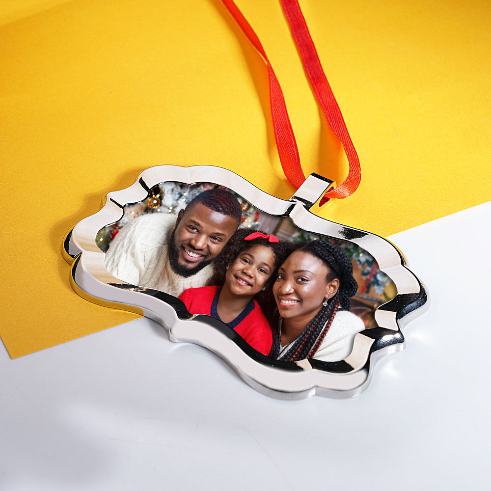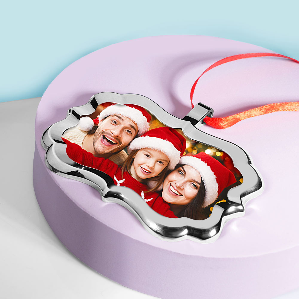 A: We digitally enhance your photos and can bring the two people close together in the photograph. There´s a special instructions box upon placing the order so that you can add any special requests. We can engrave a cross on the reverse side, again just let us know in the same box provided and we´ll take care of it for you.