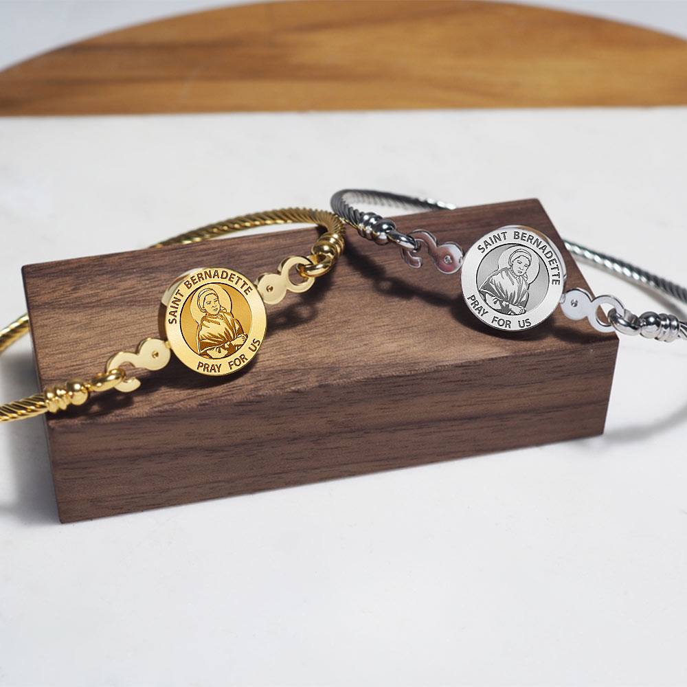 Stainless Steel Saint Bernadette (Portrait) Bangle Bracelet