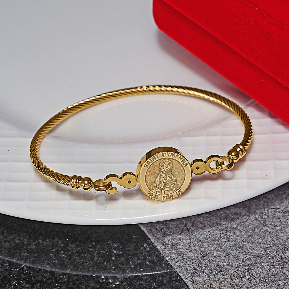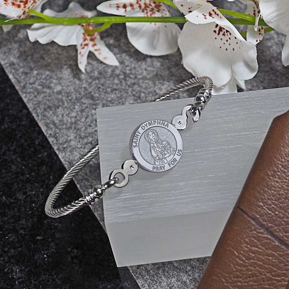 Stainless Steel Saint Dymphna Bangle Bracelet