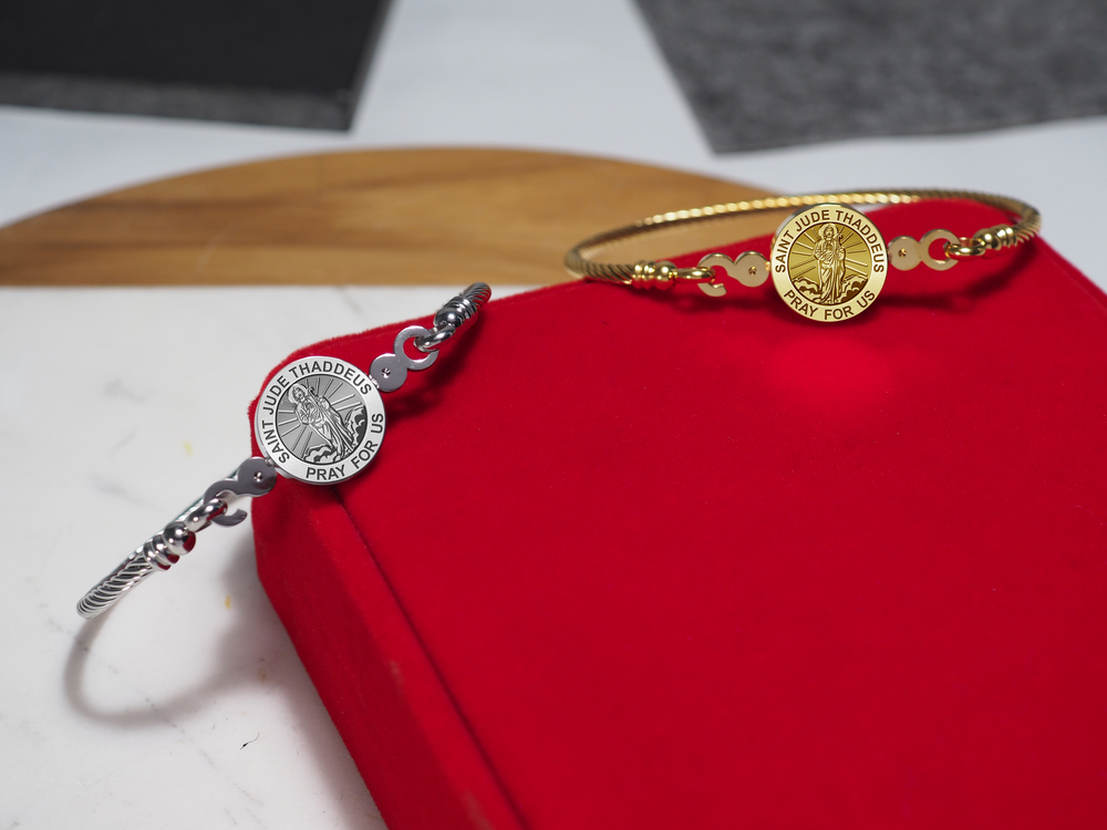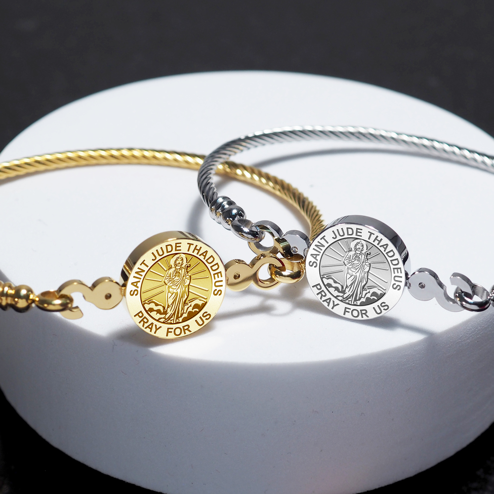 Stainless Steel Saint Jude Thaddeus Bangle Bracelet
