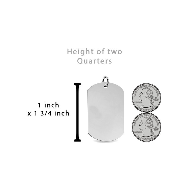Item is Stainless Steel and can be engraved on the front or back. *Chain Not Included * Monogram, Initials, or your favorite message can be engraved on the front and back. * Dog tag is Sized at Under 1 1/4 Inch x Under 2 Inches * Fits up to two numbers