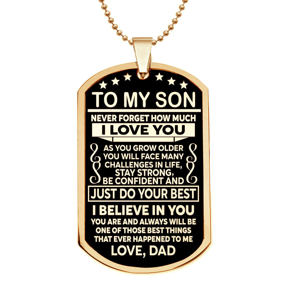 Introducing the perfect gift for your son - the Stainless Steel "To My Son" Dog Tag Necklace. Made with high-quality