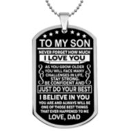 Whether you're looking for a gift to celebrate a special occasion or simply want to show your son how much you care, the Stainless Steel "To My Son" Dog Tag Necklace is the perfect choice. Order yours today and give your son a gift he will treasure forever.