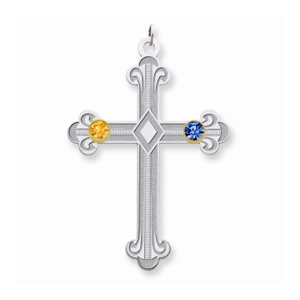 Sterling Silver/14k Bezel Crystal Family Cross Pendant