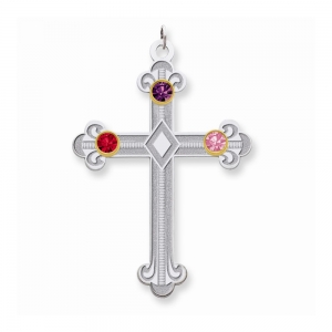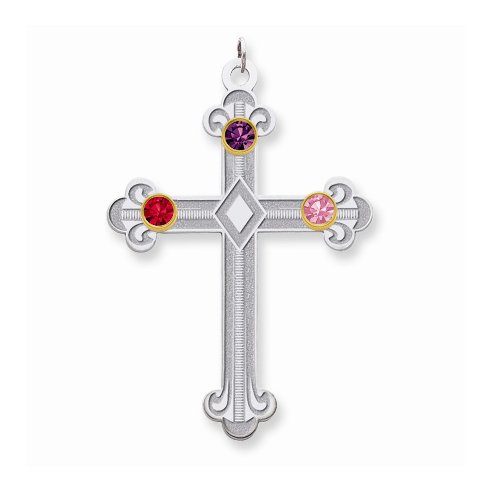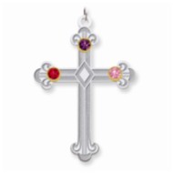 Sterling Silver/14k Bezel Crystal Family Cross Pendant