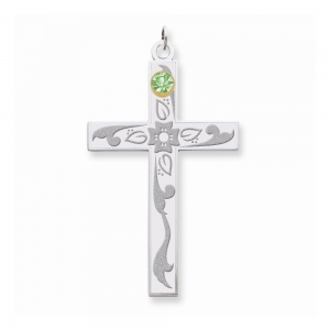 Sterling Silver/14k Bezel Crystal Family Cross Pendant