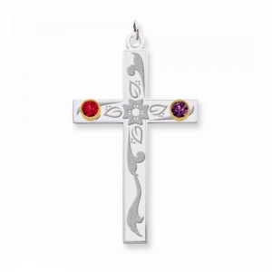 Sterling Silver/14k Bezel Crystal Family Cross Pendant