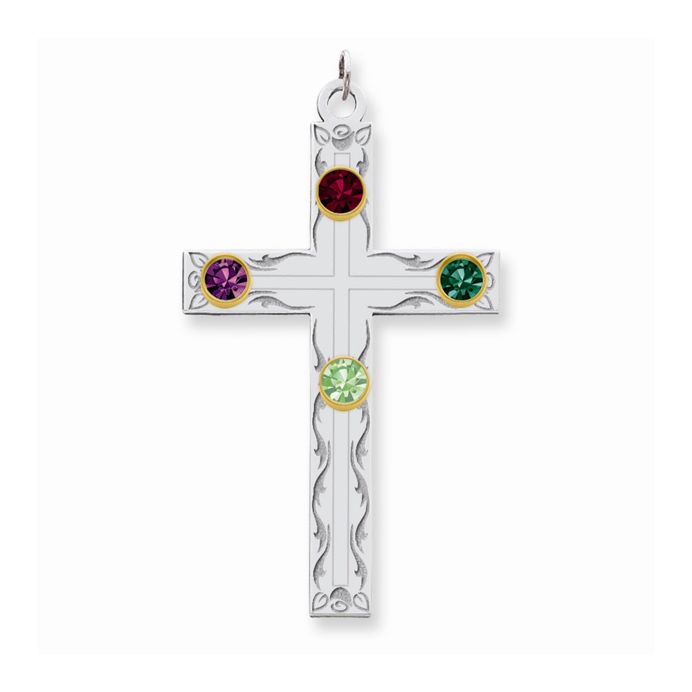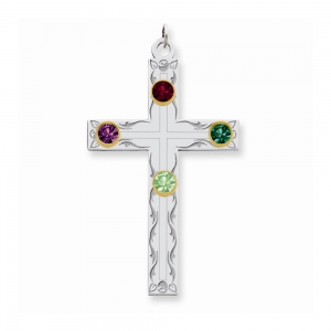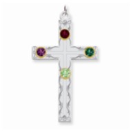 Sterling Silver/14k Bezel Crystal Family Cross Pendant