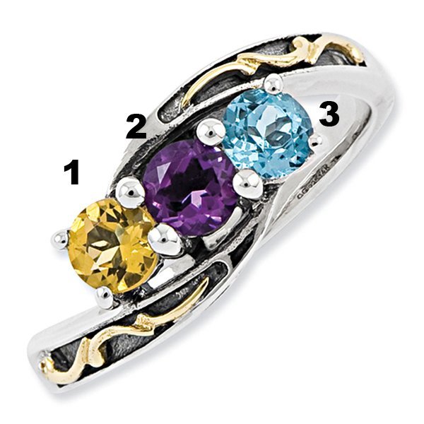 Sterling Silver & 14k Three-stone Antiqued Mother's Ring