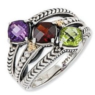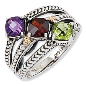 Sterling Silver & 14k Three-stone Antiqued Mother's Ring