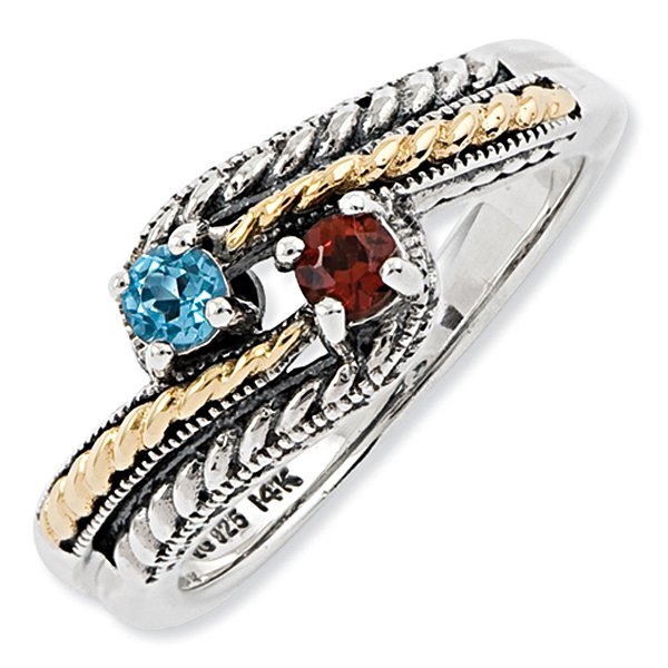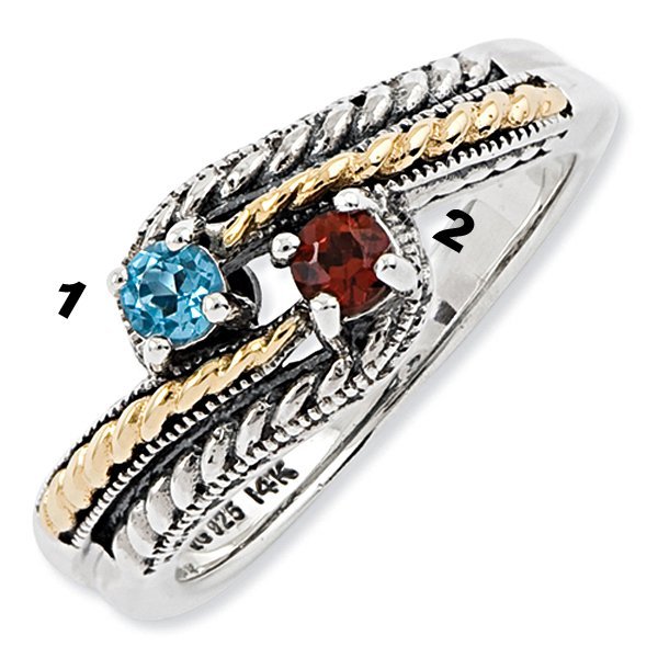 Sterling Silver & 14k Two-stone Antiqued Mother's Ring