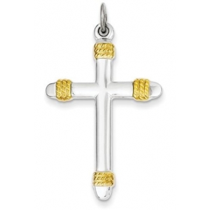 Sterling Silver & 18k Gold -plated Rope Cross Pendant