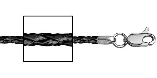 Sterling Silver 3mm Thick Black Genuine Leather Chain