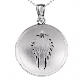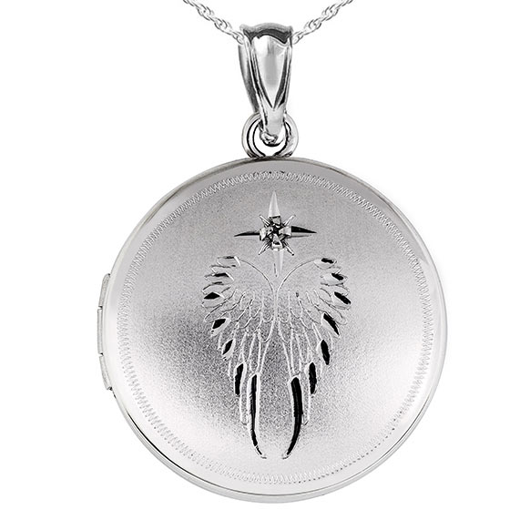 Angel Wing Round Photo Locket with Cubic Zirconia