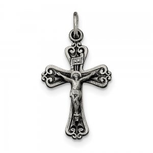 Sterling Silver Antiqued and Brushed INRI Crucifix Pendant