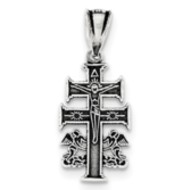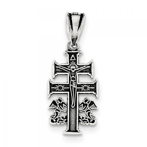 Sterling Silver Antiqued Caravaca Double Cross w/Angels Crucifix Pendant