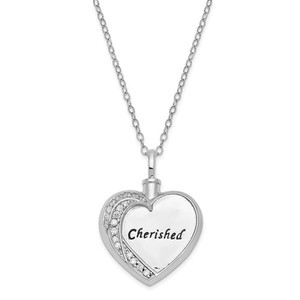 Sterling Silver CZ Antiqued Cherished Ash Holder 18in. Necklace