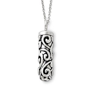 Sterling Silver Antiqued Cylinder Remembrance Cremation Ash Holder w/ 18 Inch Chain