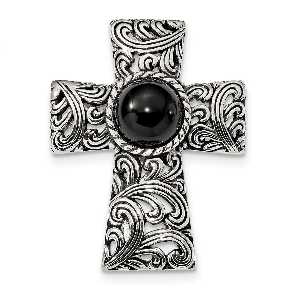 Sterling Silver Antiqued Filigree Black Onyx Cabochon Slide