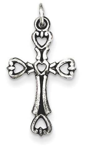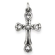 Sterling Silver Antiqued Heart Cross Charm