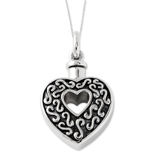 Sterling Silver Antiqued Heart Remembrance Cremation Ash Holder w/ 18 Inch Chain