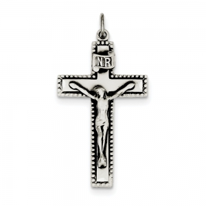 Sterling Silver Antiqued INRI Crucifix Pendant