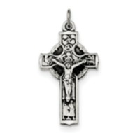 Sterling Silver Antiqued Irish 4-Way INRI Crucifix Cross Pendant