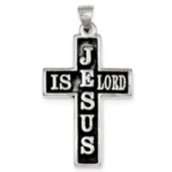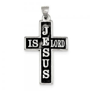 Sterling Silver Antiqued Jesus Is Lord Cross Pendant