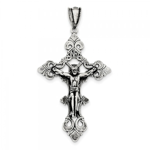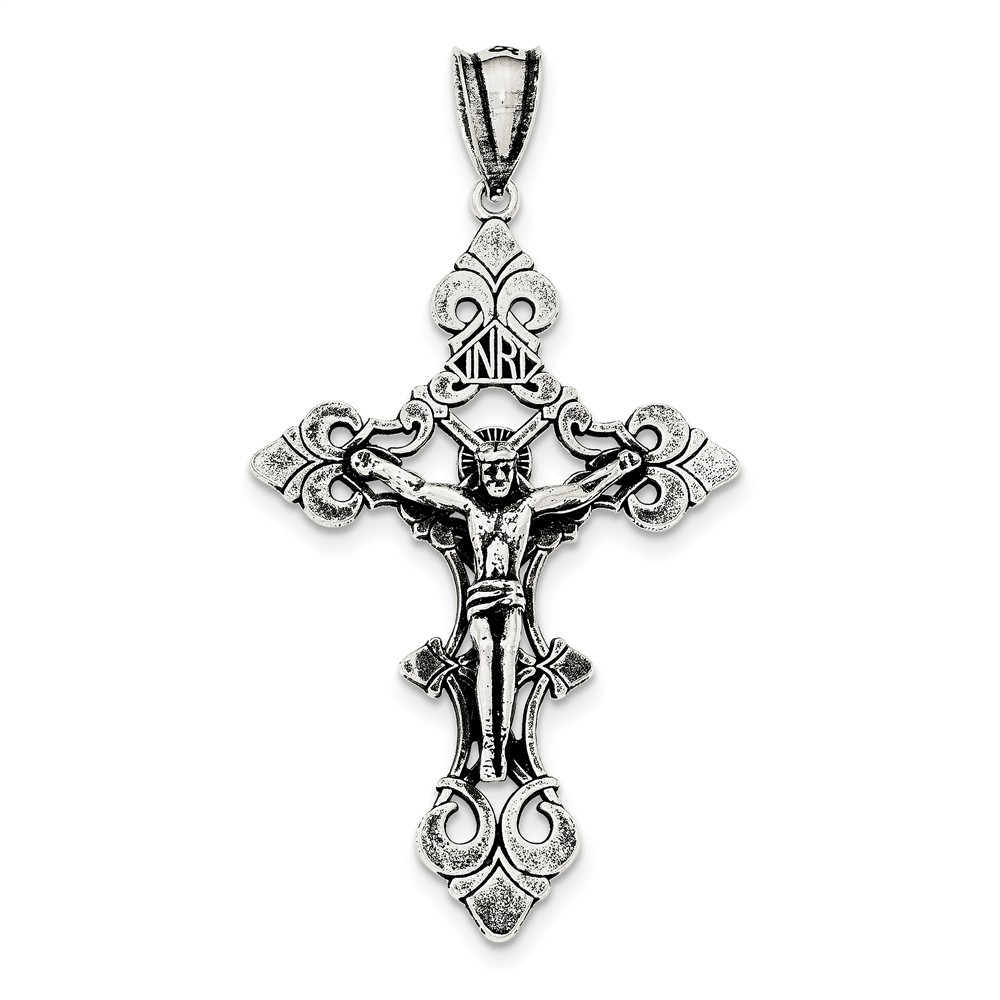 Sterling Silver Antiqued Large INRI Crucifix Pendant