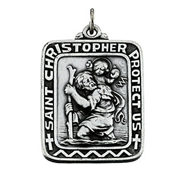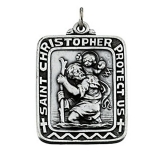 Sterling Silver Antiqued Rectangle Saint Christopher Religious Medal