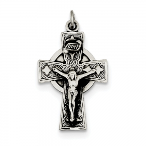 Sterling Silver Antiqued Satin Irish Crucifix Cross Pendant