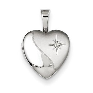 Sterling Silver Baby Polished Heart Locket with Genuine Diamond