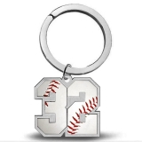 Sterling Silver Baseball Number & Stainless Steel Key Ring with 1 or 2 Digits