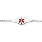 Sterling Silver Child's Medical ID Red Enamel Bracelet w/ Rope Chain