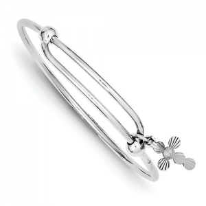 Sterling Silver Children's Cross Charm Expandable Bangle Bracelet