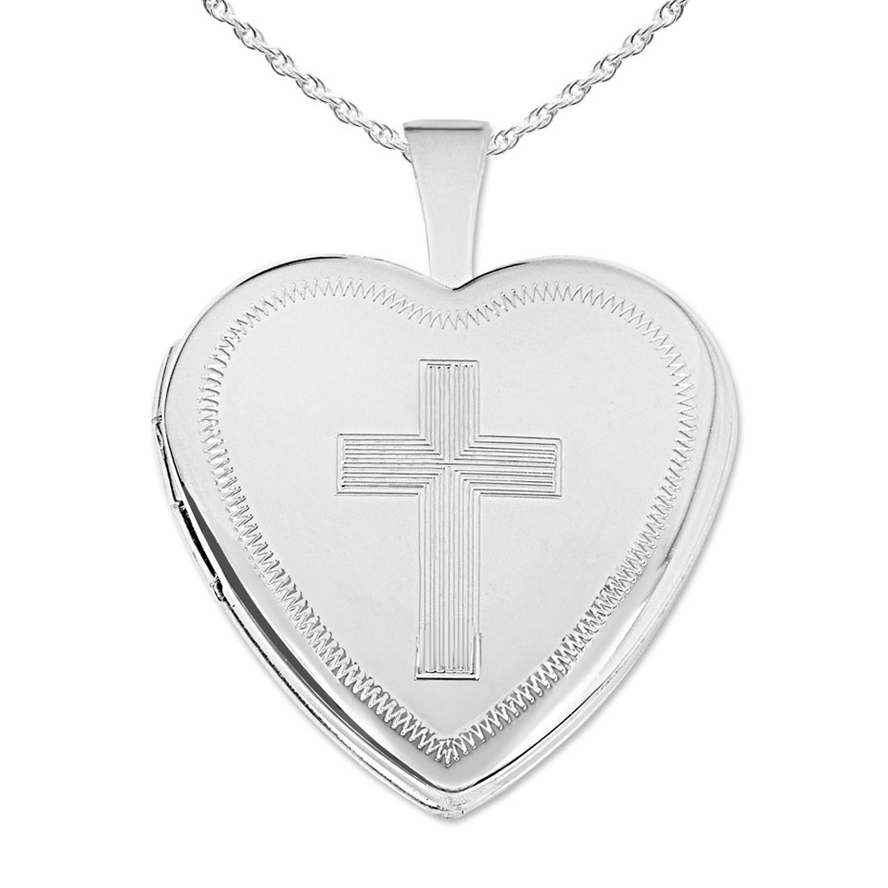 Locket front side has a beautiful hand engraved cross design, backed by a mirror finished polish.center>