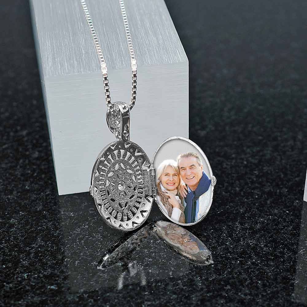 Your locket can have a picture permanently lasered inside or a photo print that fits perfectly. Alternatively you can also add your own photo prints at home.