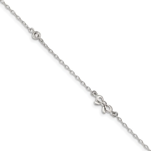 Sterling Silver CZ Accent & Bow Charm w/ 1 Inch ext.