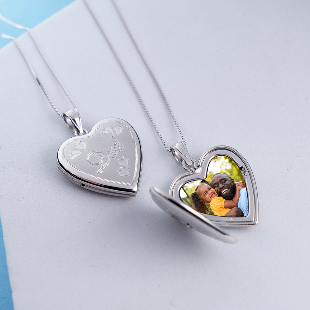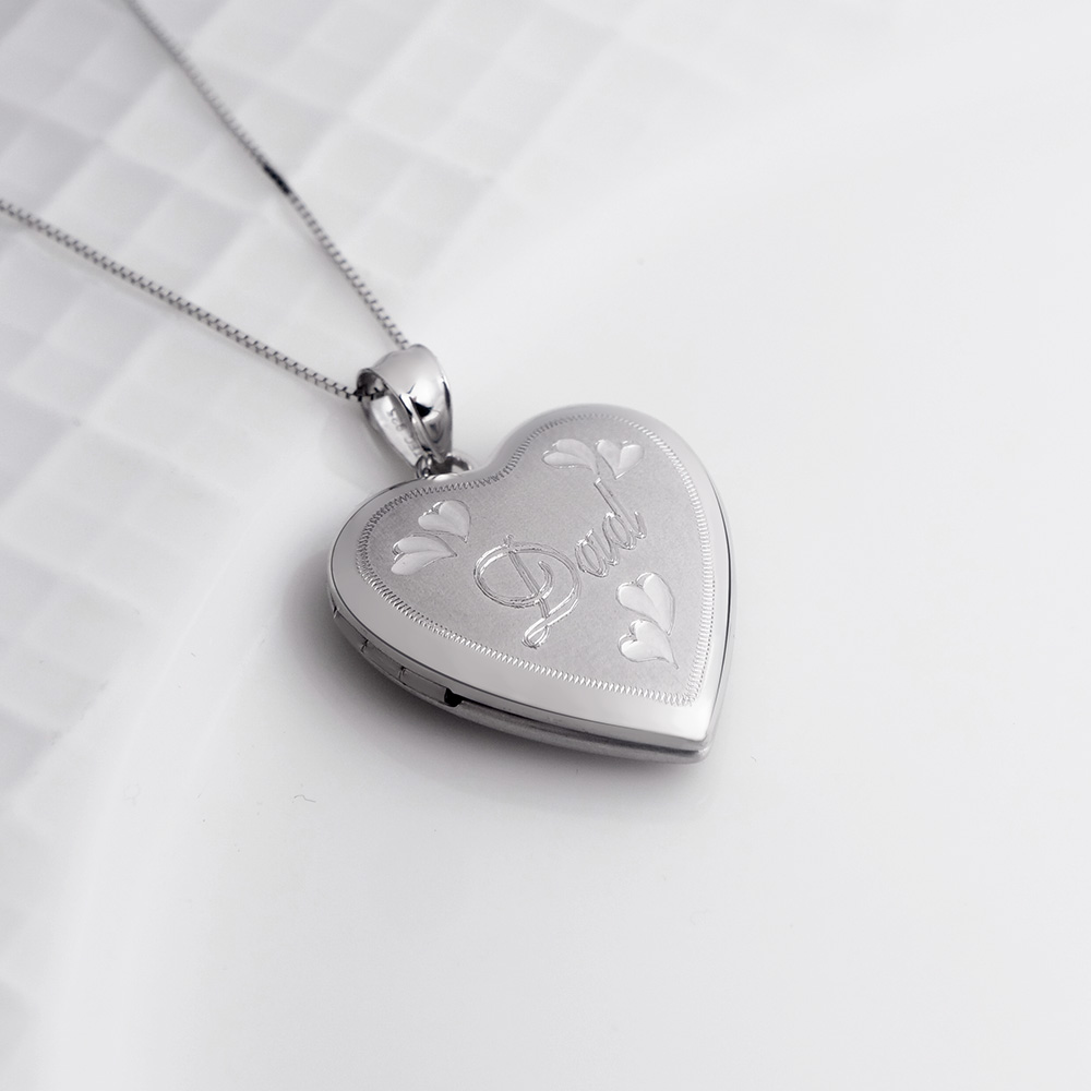 Show your love and appreciation with our Sterling Silver Dad Locket featuring a heart design. Crafted with care, this meaningful piece is perfect for holding cherished memories close. A heartfelt tribute to fathers, it's a timeless symbol of love and gratitude.