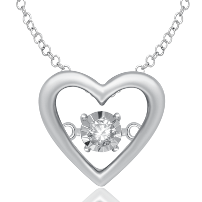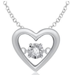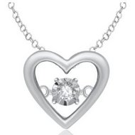 The center diamond is set into a small bezel that hugs the edge of the diamond. The bezeled diamond is then securely placed into the middle of the pendant using a new and innovated design allowing the diamond to continuously move with the slightest of movements such as breathing, heartbeat, or even the vibrations from the room you are standing in creating The Dancing Diamonds.