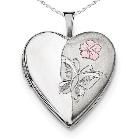 Enameled Butterfly Heart Photo Locket