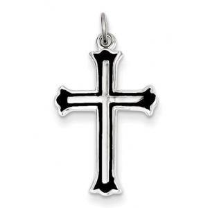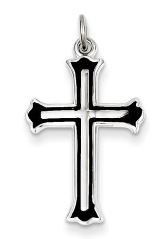 *This Cross is Solid Sterling Silver with black enamel *Measures at Approximately 2/3 inch x 1 inch *Approximate Weight is 1.20 GM *** ALL SIZES ARE APPROXIMATE***