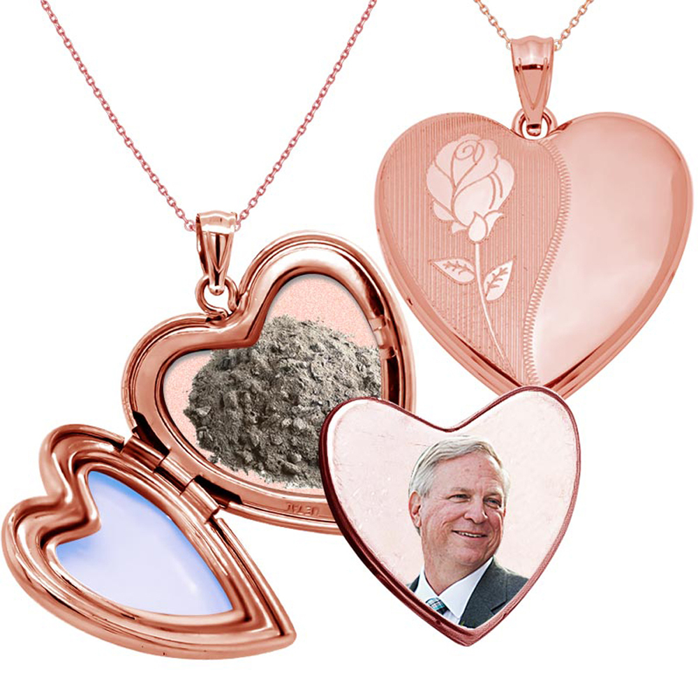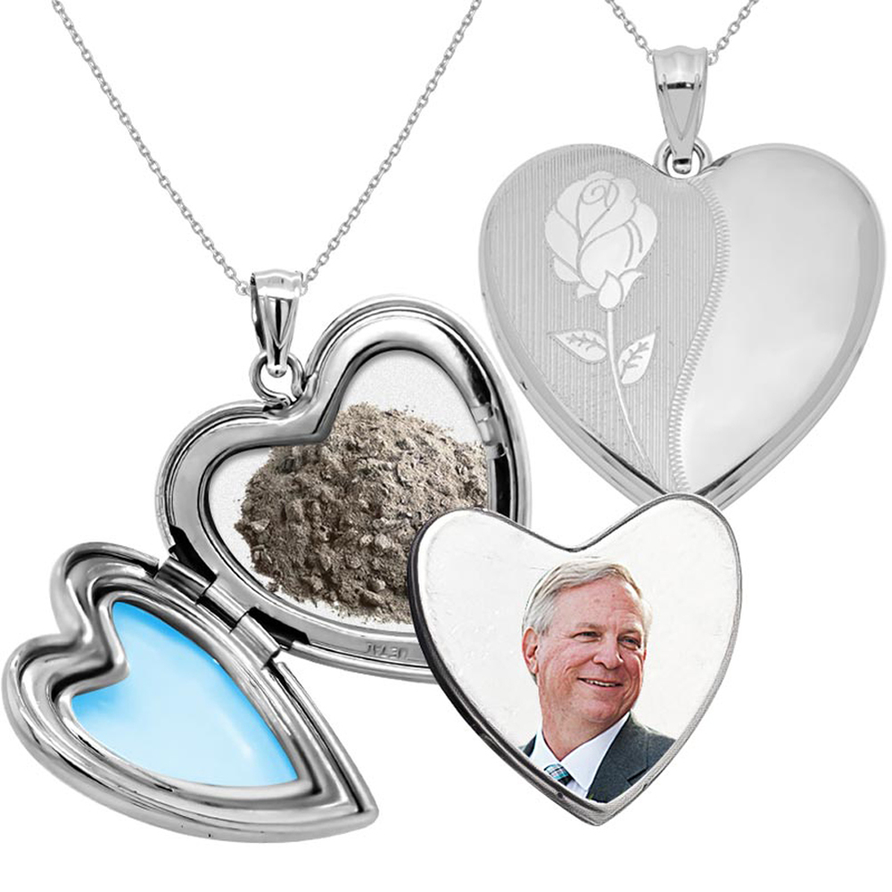 Sterling Silver Enameled Rose Cremation & Hair Photo Locket