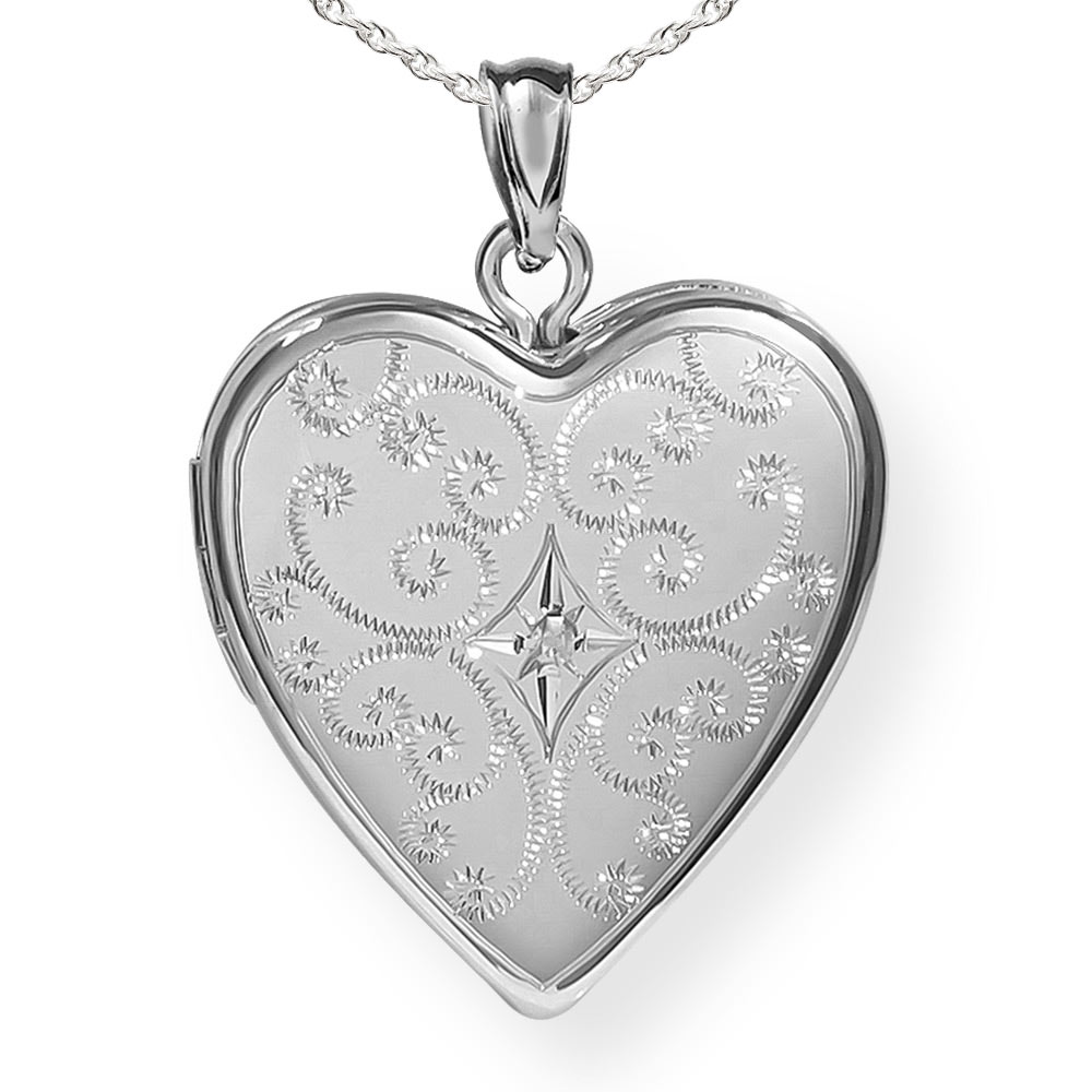 This Beautiful .925 Solid Sterling Silver locket has a lovely engraved Design on the front of the locket. you can engrave a personal message on the inside and also on the back. it hold two pictures. Its the Perfect Gift for Any Occasion
