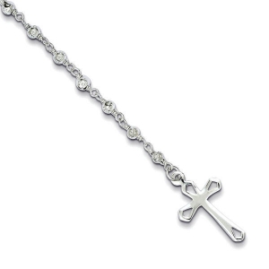 Sterling Silver & Freshwater Cultured Pearl Rosary Cross Bracelet